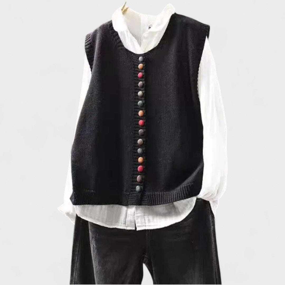 Un chaleco elegante y versátil que completa cualquier conjunto con ligereza y encanto. Perfecto para quienes valoran prendas atemporales que combinan comodidad y estilo con naturalidad.