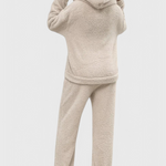 Billie lleva la calidez y suavidad a un nivel completamente nuevo. Diseñado para los acogedores días de invierno, este conjunto de dos piezas de teddy cuenta con una sudadera de corte relajado con un espacioso bolsillo tipo canguro y pantalones de felpa a juego. Ya sea que estés descansando en casa o manteniéndote caliente en las frías mañanas, Mia te envuelve en comodidad sin comprometer el estilo.