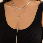 Líneas limpias se encuentran con una presencia audaz en este collar choker de cadena metálica, diseñado para un impacto sin esfuerzo. Su silueta ajustada y sus eslabones pulidos aportan un acabado contemporáneo y elegante al estilo diario, con el toque justo de audacia.
