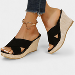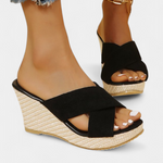 • Tacón en cuña que estiliza y protege la espalda al caminar