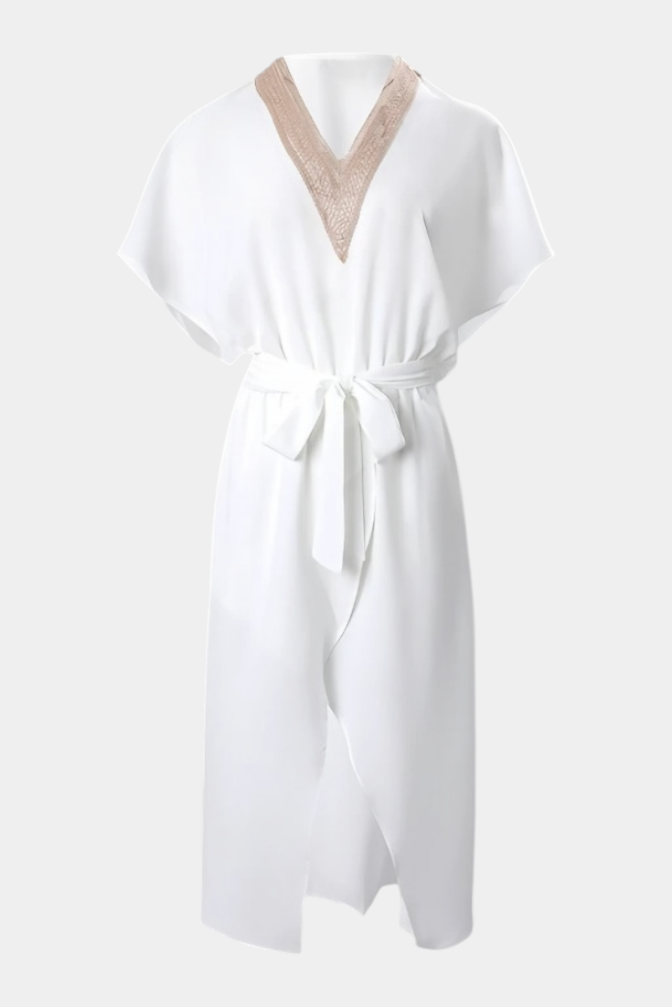 Effie Vestido Blanco Cruzado con Escote Calado y Abertura Frontal