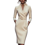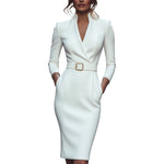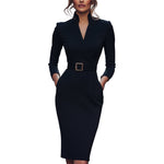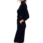Marina | Vestido negro refinado con cinturón y cuello mandarín