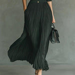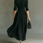 Elvira | Vestido largo plisado con solapa y cintura alta