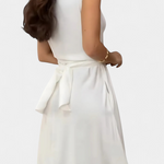 • Lazo ajustable que define la cintura con sutileza femenina