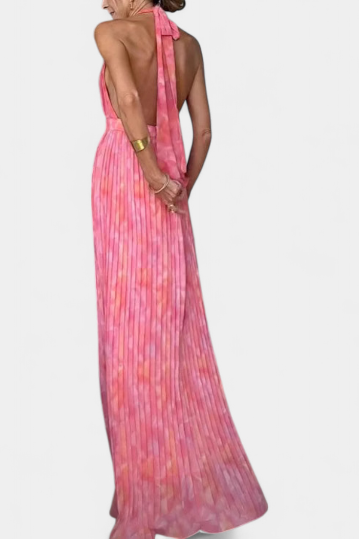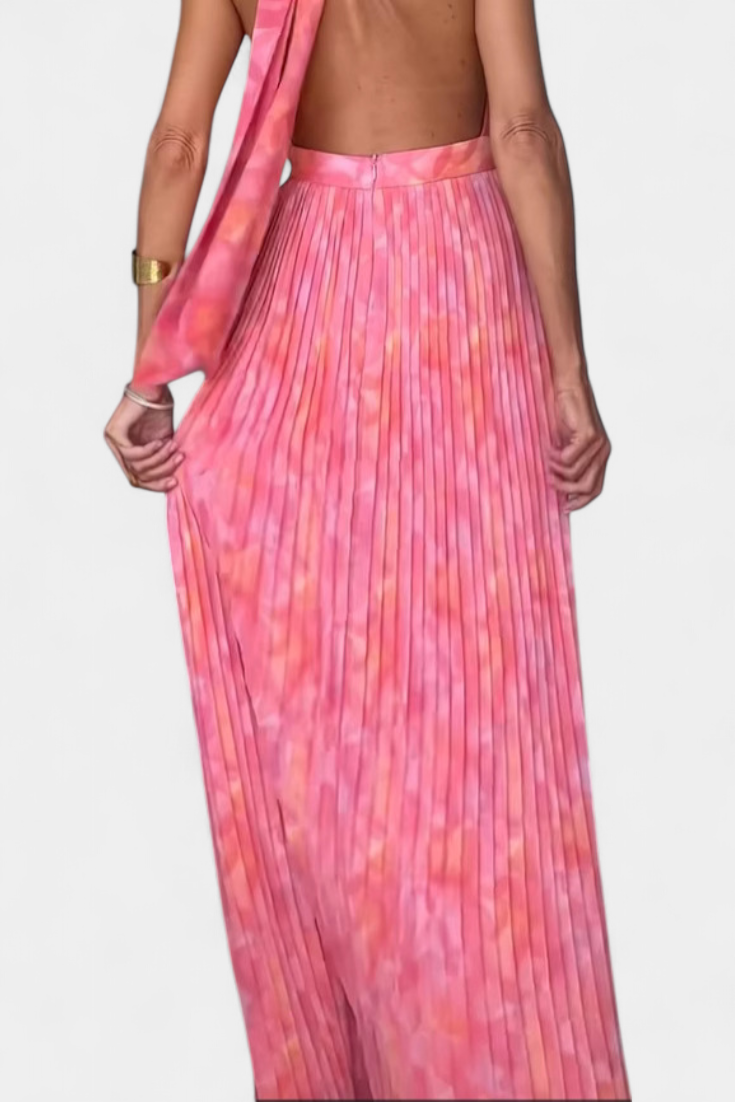 Prisca Vestido Maxi Plisado con Espalda Abierta y Cuello Halter