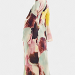 Audaz y artístico, el Vestido Dana aporta una elegancia digna de galería a tu armario. Con un estampado abstracto de acuarela, mangas acampanadas y un detalle escultural de frontal torcido, esta silueta ultra-larga está hecha para fluir con gracia y hacer una declaración en cada paso.
