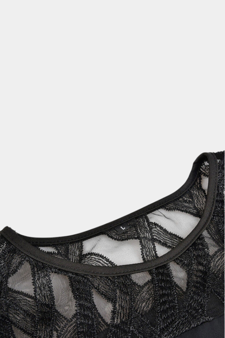 • El escote redondo y las mangas de encaje añaden un detalle femenino y equilibrio
